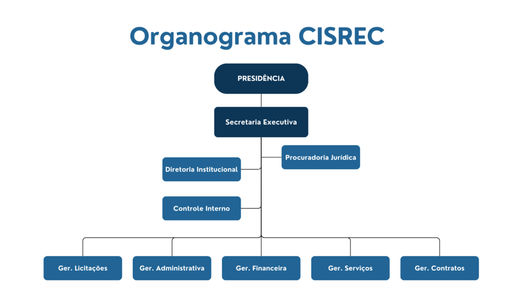 Presidente: Jocimar Brandão presidente@cisrec.mg.gov.brSecretário Executivo: Max Pereira secretariaexecutiva@cisrec.mg.gov.brProcurador Jurídico: Izabela Felix Teixeira juridico@cisrec.mg.gov.brDiretor Institucional: Diego Álvaro Santos institucional@cisrec.mg.gov.brControladora Interno: Bruna Luiza Figueiredo controleinterno@cisrec.mg.gov.brGerente de Licitações: Ariane Alves Ribeiro licitacao@cisrec.mg.gov.brGerente Administrativa: Luciany Mansur faturamento@cisrec.mg.gov.brGerente Financeira: Eneida Fischer financeiro@cisrec.mg.gov.brGerente de Serviços: Darla Andrade servicos@cisrec.mg.gov.brGerente de Contratos: Rayanny Castro contratos@cisrec.mg.gov.br